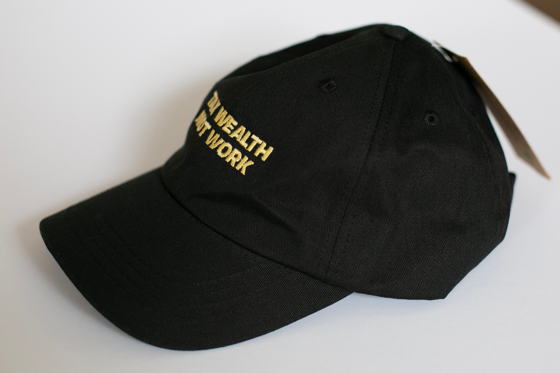 100% organic cotton, 1 size, TAX WEALTH NOT WORK baseball cap.