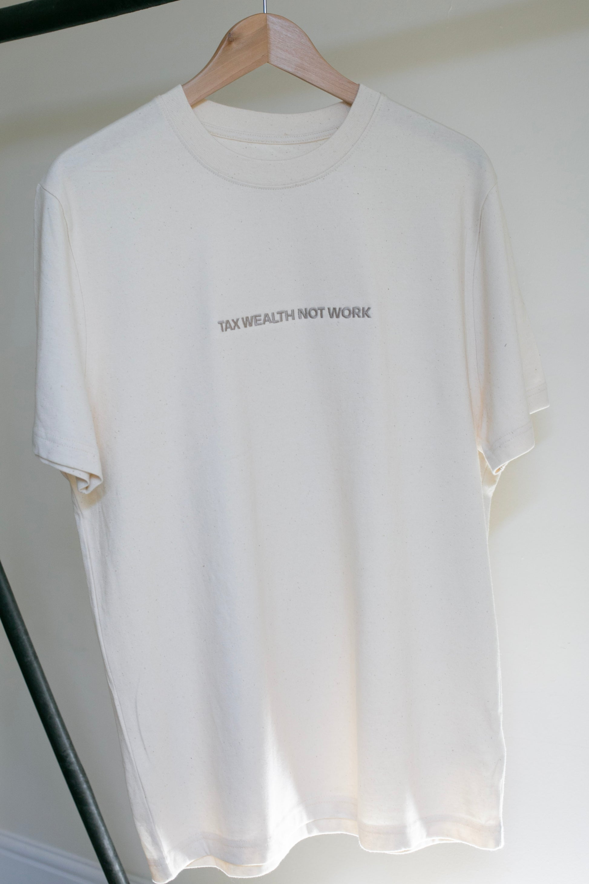 100% organic cotton, relaxed fit, unisex, Natural Raw colour (this is the natural colour of cotton, it's a warm off-white), PETA vegan approved, sustainably manufactured.