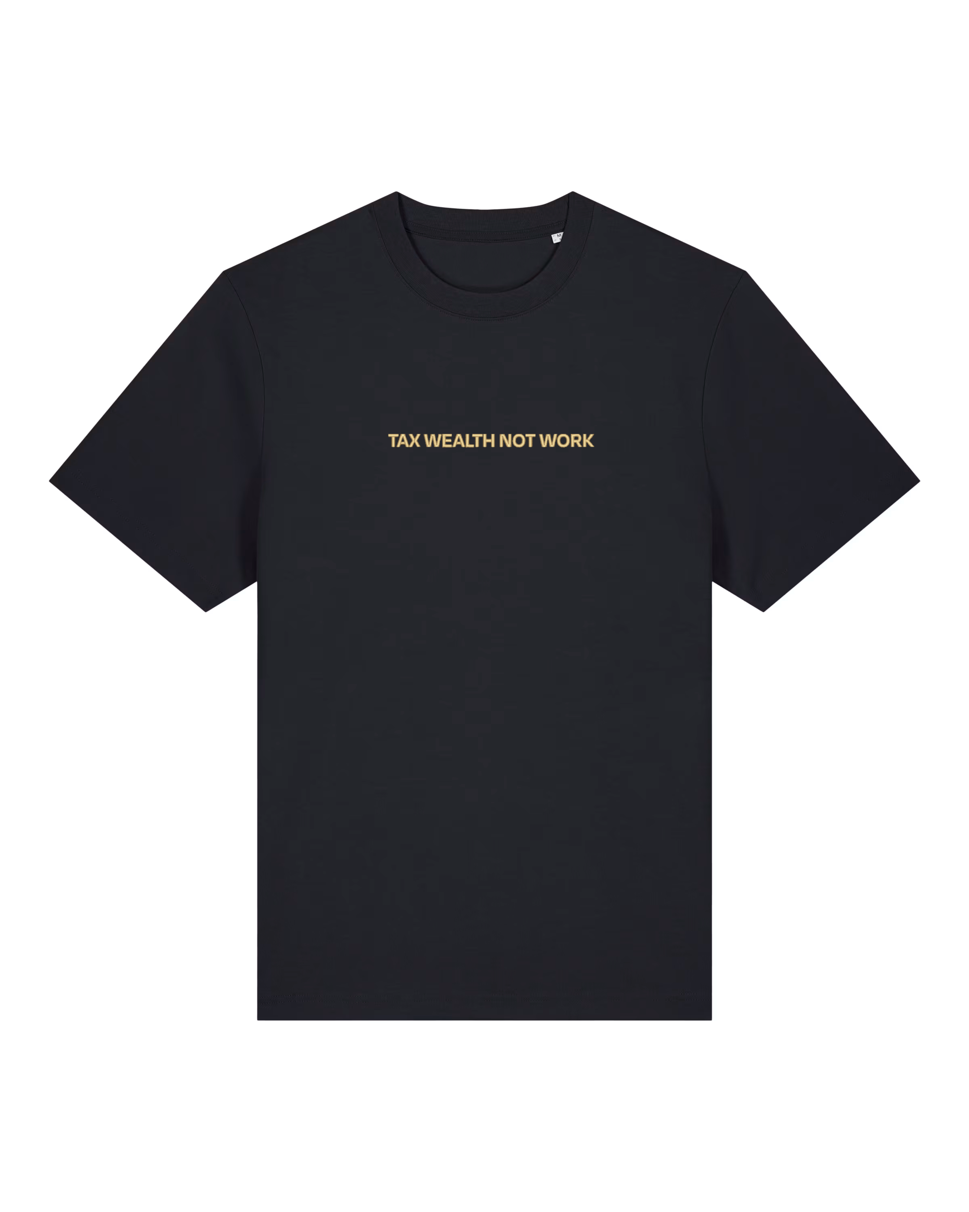 100% organic cotton, relaxed fit, unisex, Black colour, PETA vegan approved, sustainably manufactured.